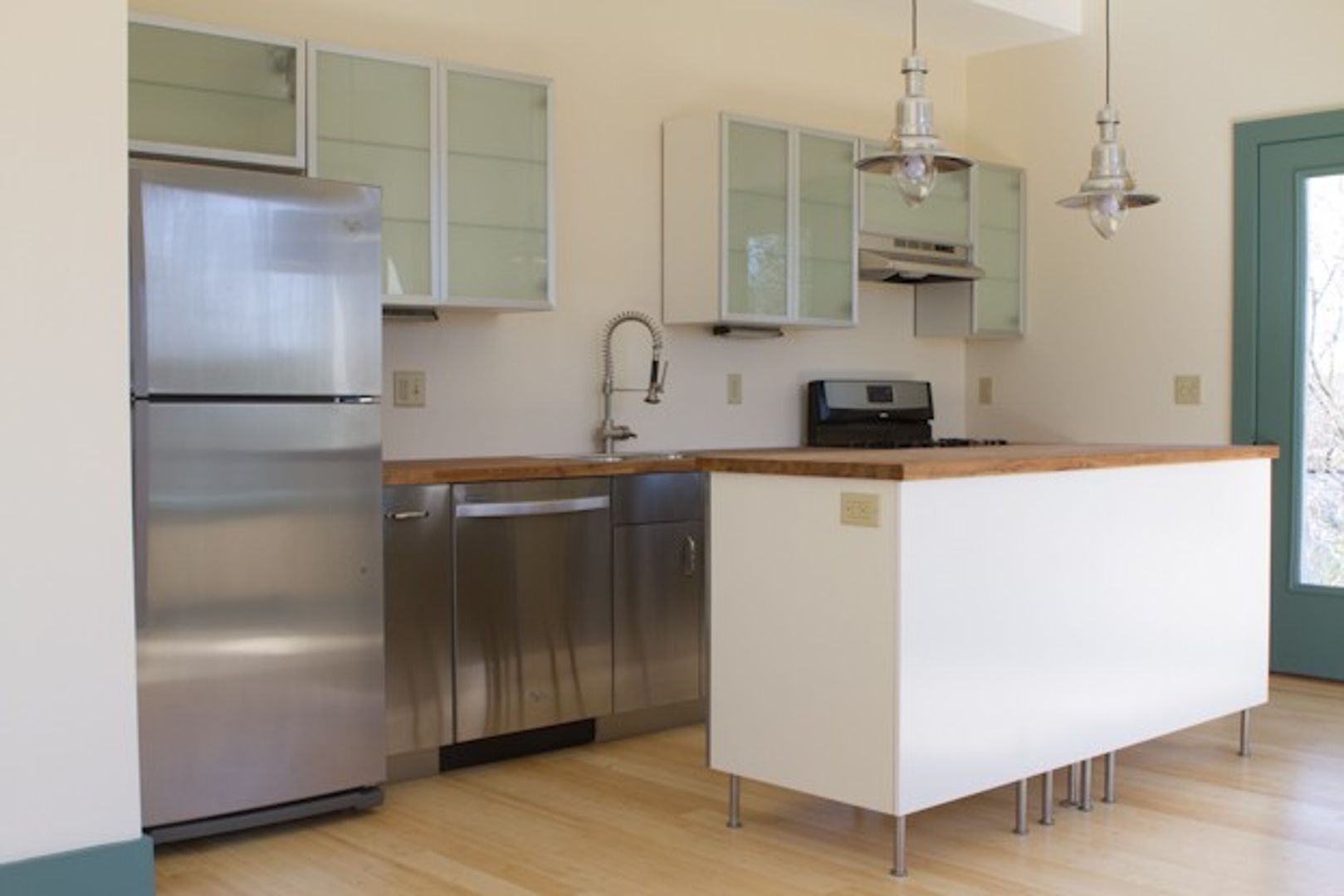 This exceptional condominium features an open floor plan on the 1st floor, reserved off-street parking for tenants, private front and back porches, outdoor seating and stone walkways. Modern in its details, each home has been designed with energy efficiency in mind from the selection of the appliances, windows, insulation, Rinnai on-demand hot water system, to the heat system. Washer and dryer included. All units are smoke-free.