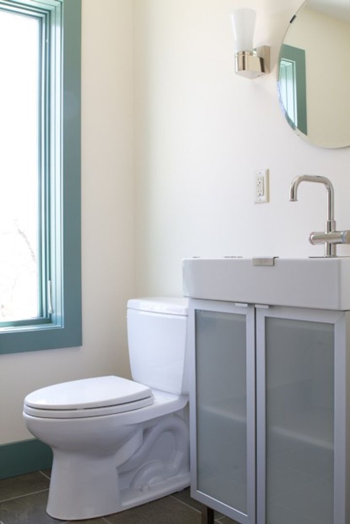 • Bathrooms with tiled floors, water-saving toilets with quiet flush, and cabinets and shelving for storage; and