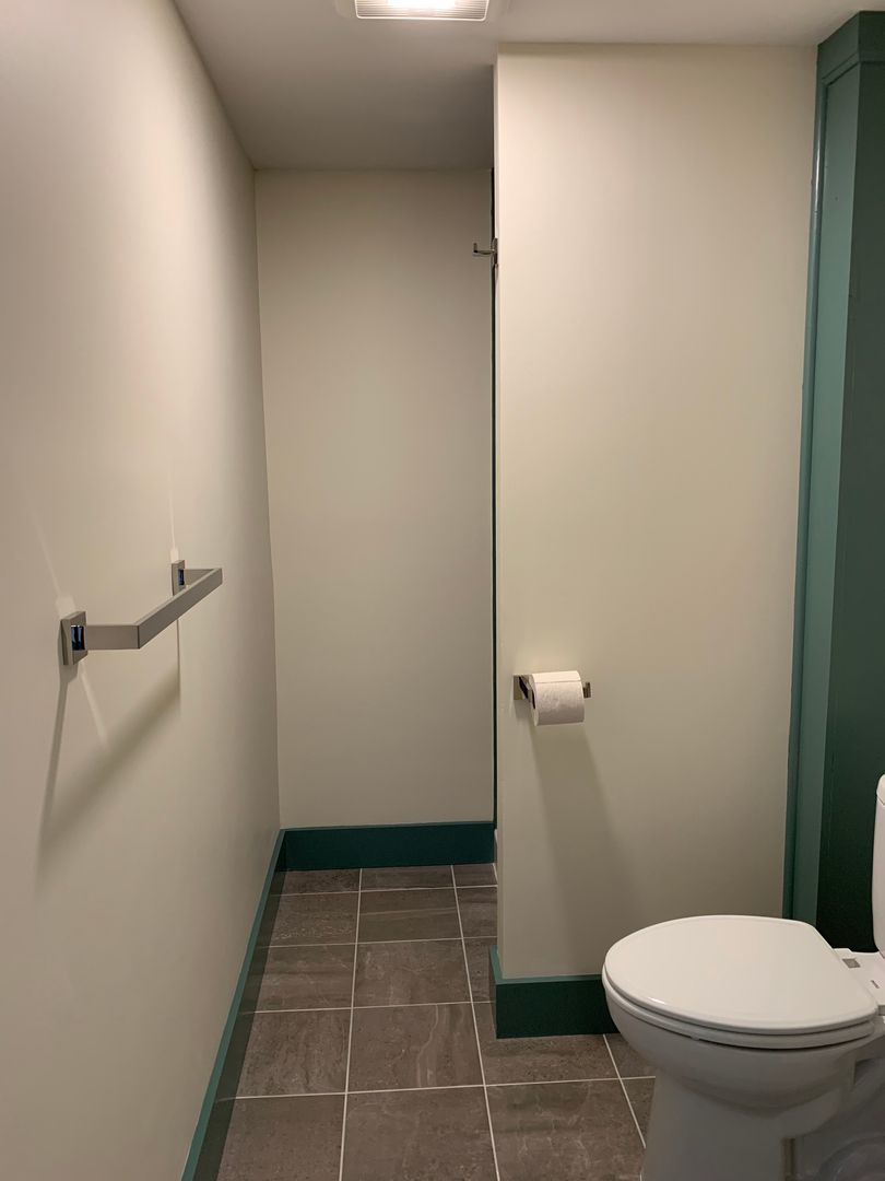 The open living area and kitchen layout offers design flexibility for the space. Quality lighting fixtures provide soft overhead lighting. The kitchen area features warm wood butcher block countertops, recently-installed high-quality, energy-efficient appliances, and a stainless-steel sink. For those who like to cook, there is a five-burner gas range/oven with overhead range hood, plenty of cabinets and countertop space for storage and food preparation. There is a space-saving counter designed for dining – just add seating. The bathroom is accentuated with soft-hued porcelain, with a newly tiled shower and floor.